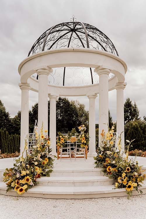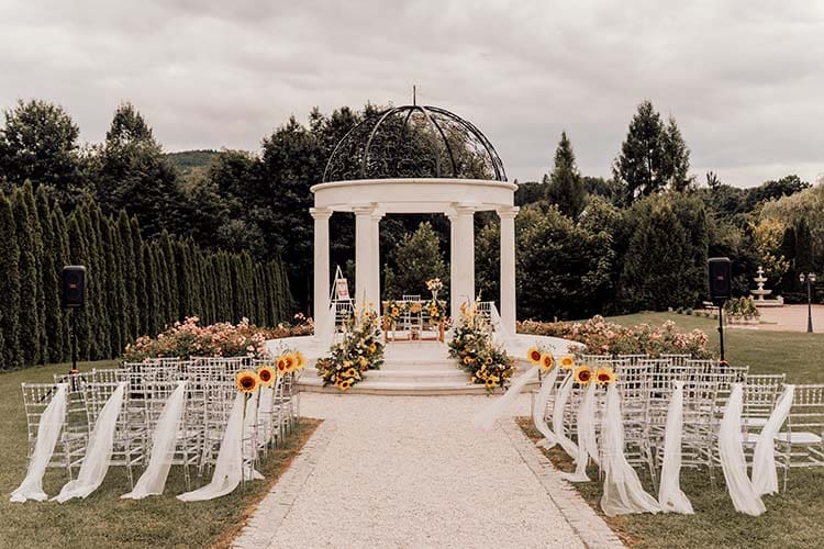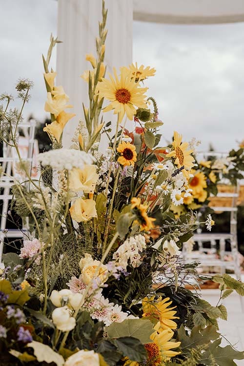 Ceremonia ślubna w stylu rustik glam z motywem słonecznika