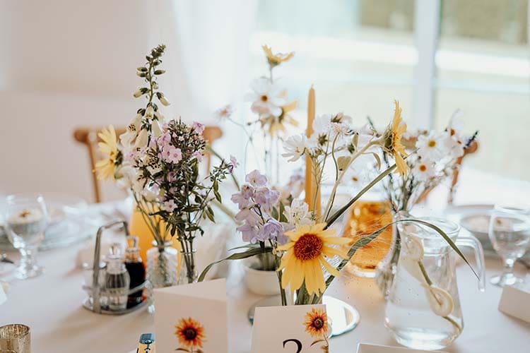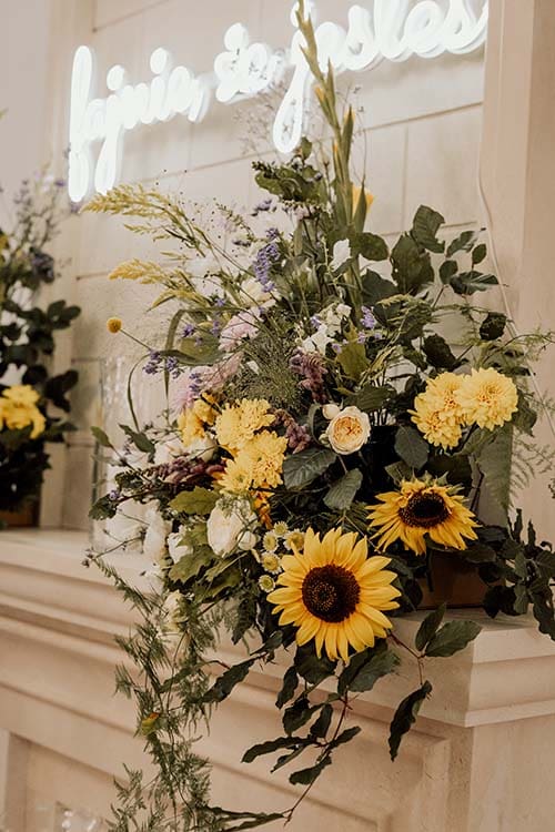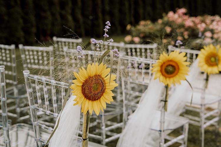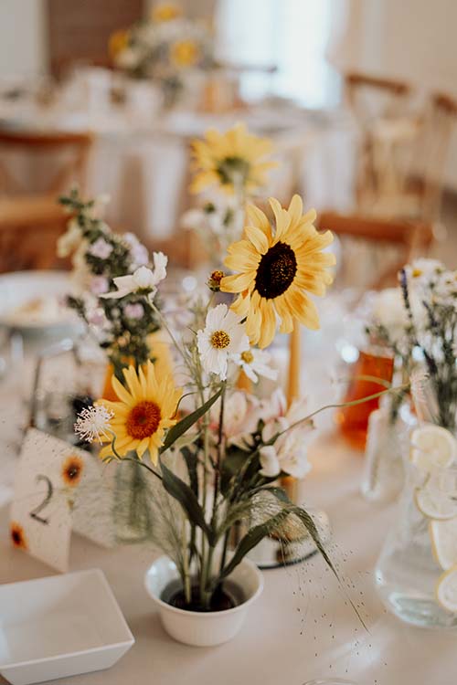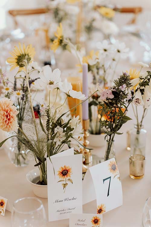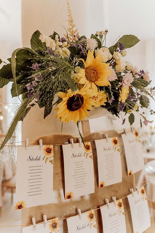 Żółte słoneczniki kojarzą się z dzieciństwem i sielskim klimatem wakacji – są piękna inspiracją i doskonałym motywem przewodnim wesela.